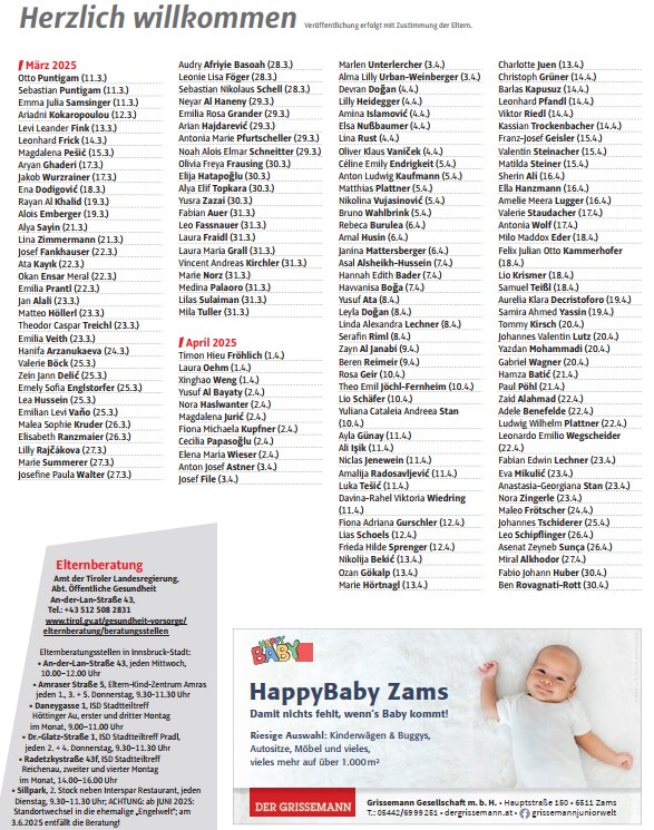 Geburten Jänner/Februar/März 2025 erschienen in der "Innsbruck informiert"-Ausgabe Mai 2025
