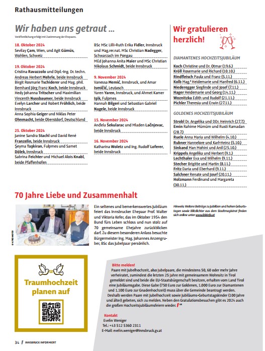 Trauungen November/Dezember 2024 erschienen in der "Innsbruck informiert"-Ausgabe Jänner 2025